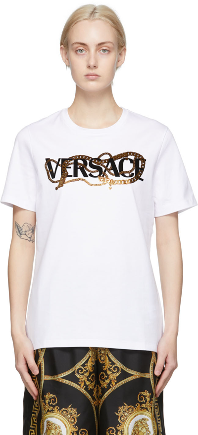 Versace White Cotton T shirt With Logo Print ModeSens Very well made.