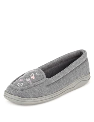 Secret Support Heart Embroidered Moccasin Slippers M S Very well made.