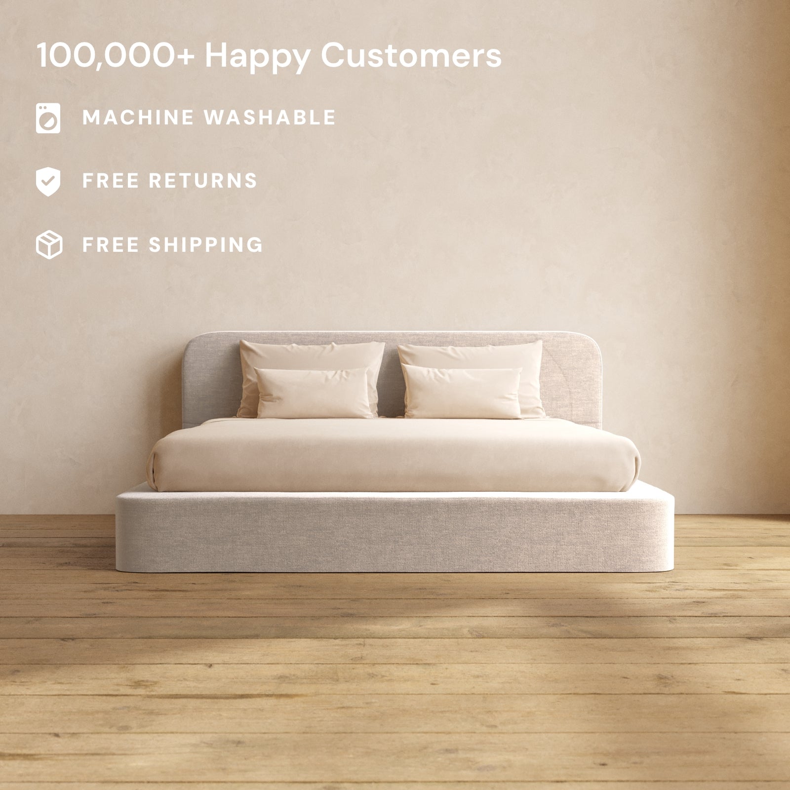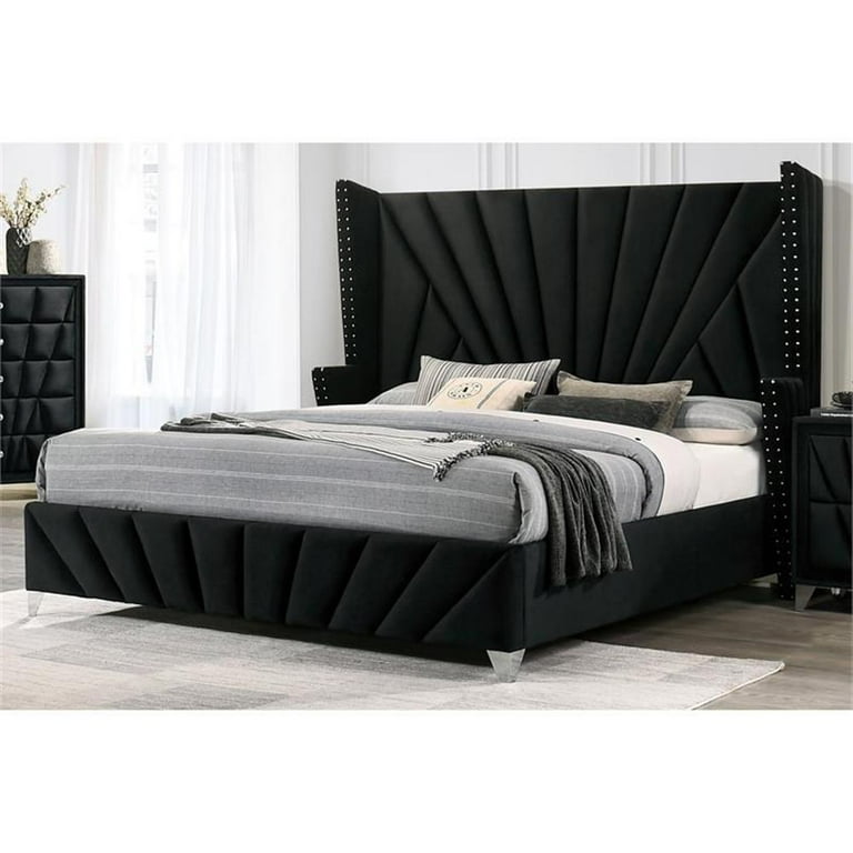 King Upholstered Platform Bed Headboard Mod Velvet in Mist Anabei Very well made.