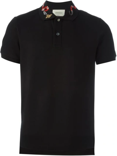 Gucci Snake Bee Embroidered collar Polo Shirt Black White Very well made.