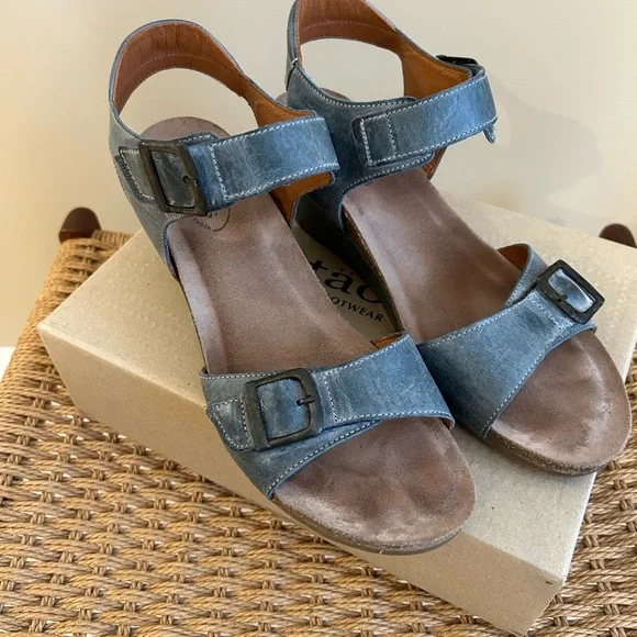 Taos Buckle Up wedge sandals Tan leather sandals Leather Very well made.
