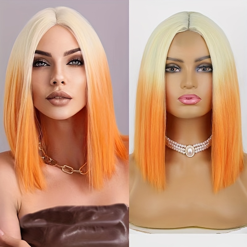 Short Orange Wig Middle Part Blonde Bob Wig Synthetic Heat Resistant Wig Cosplay Wig Music Festival Very well made.