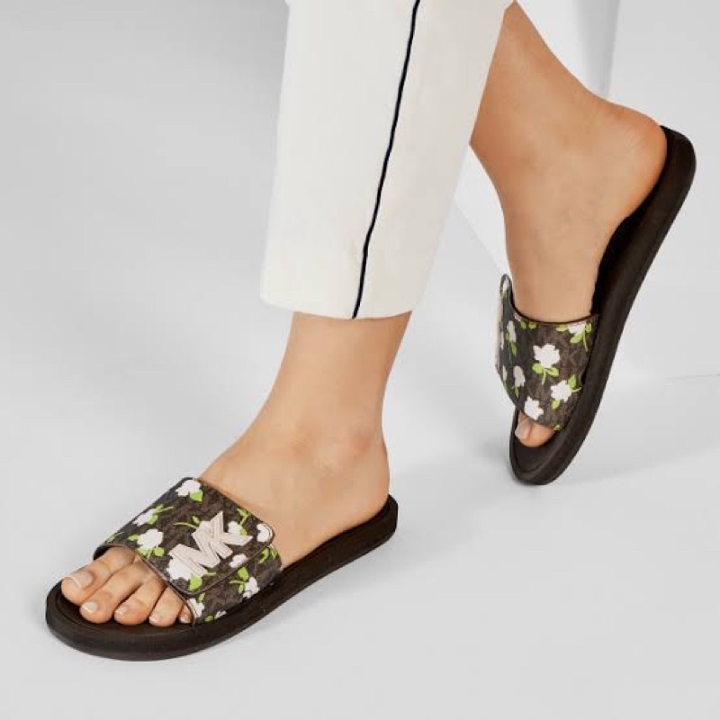 Michael Kors MK Slides Brown MK Logo Floral. Women s Size 10 NEW Very well made.
