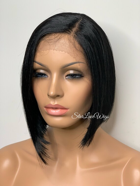 Black Bob Wig Lace Front Straight Bob Wig Short Wig Short Black Wig Wig Bob Hair Style Black Bob Lace Wig Side Part Bob Etsy UK Very well made.