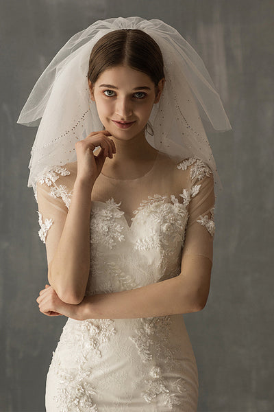 Ivory Off White Short Tulle One Layer Bridal Veil With Crystal Detail Very well made.