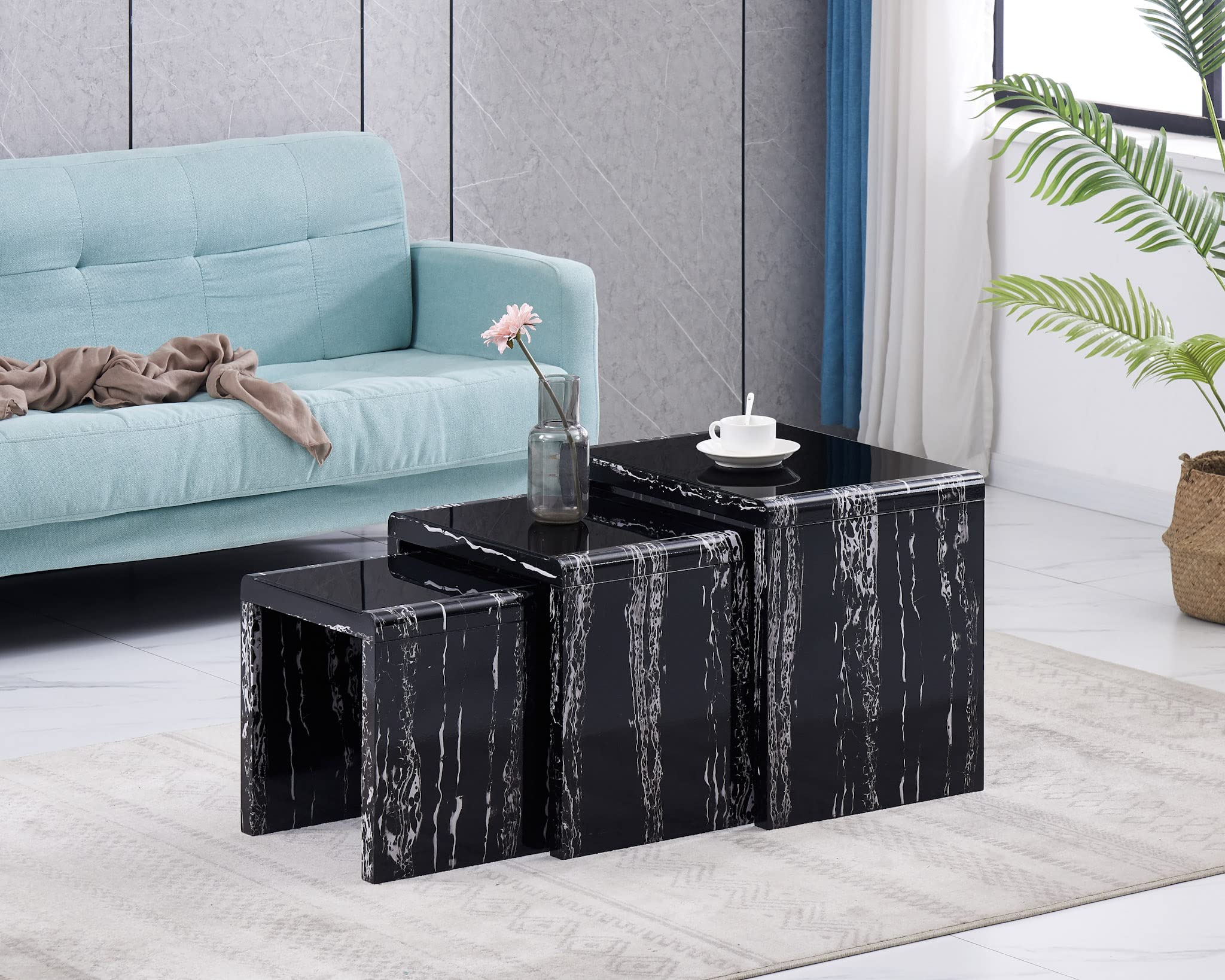 Furniture Express Nest of 3 Tables High Gloss Marble Effect Finish with Black Tempered Glass Top Multi Functional Nesting Tables Coffee Table Set Very well made.