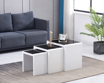 Furniture Express Nest of 3 Tables High Gloss White Finish with Black Tempered Glass Top Very well made.
