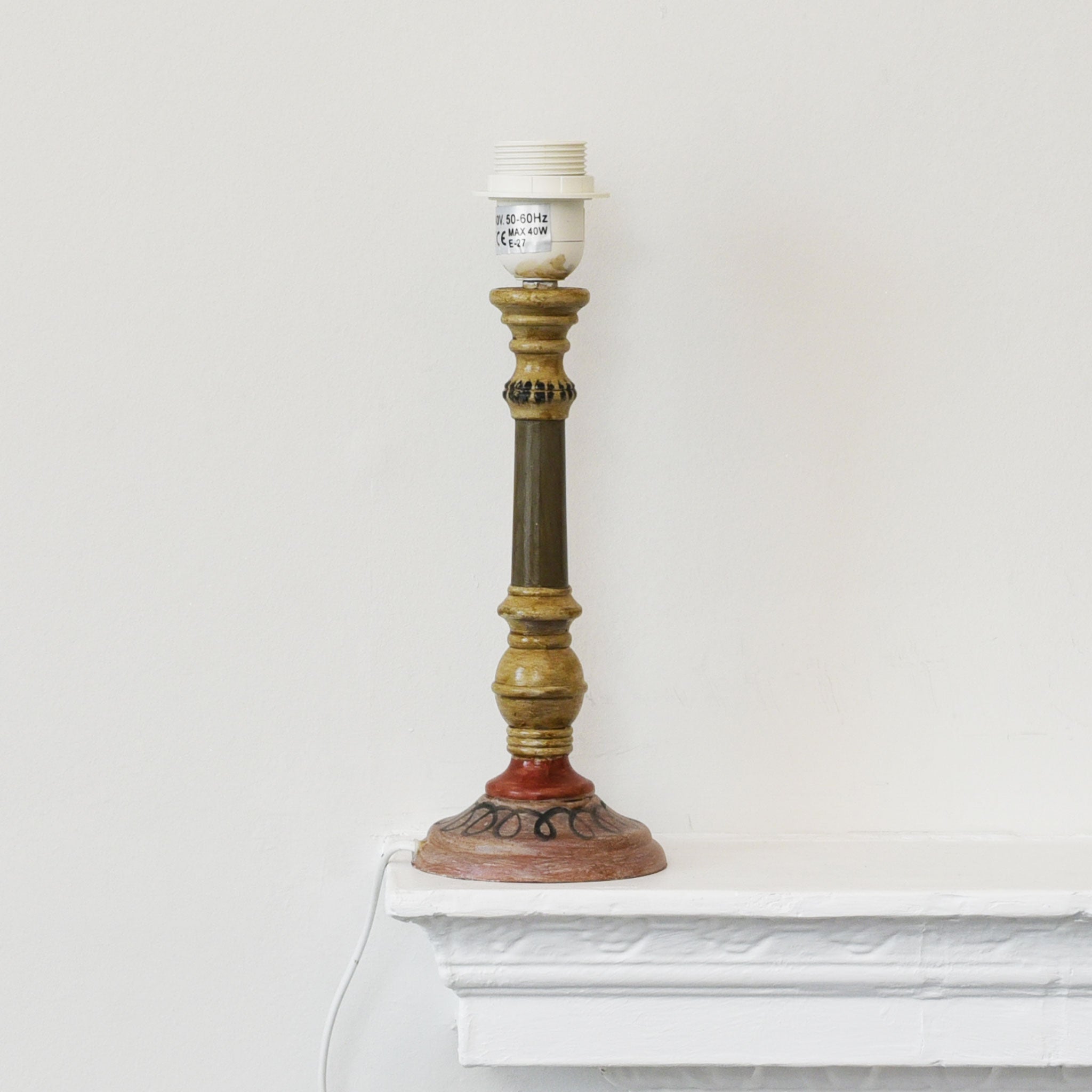Pedestal Table Lamp Antique Brass Glass Cream Fabric Searchlight Electric Very well made.