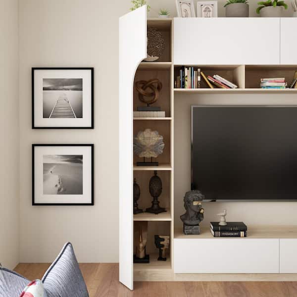FUFU GAGA White Wood Entertainment Center Storage Credenza TV Console with Bookshelves Top Cabinets Drawers for TVs up to 63 in. KF210255 012 Very well made.