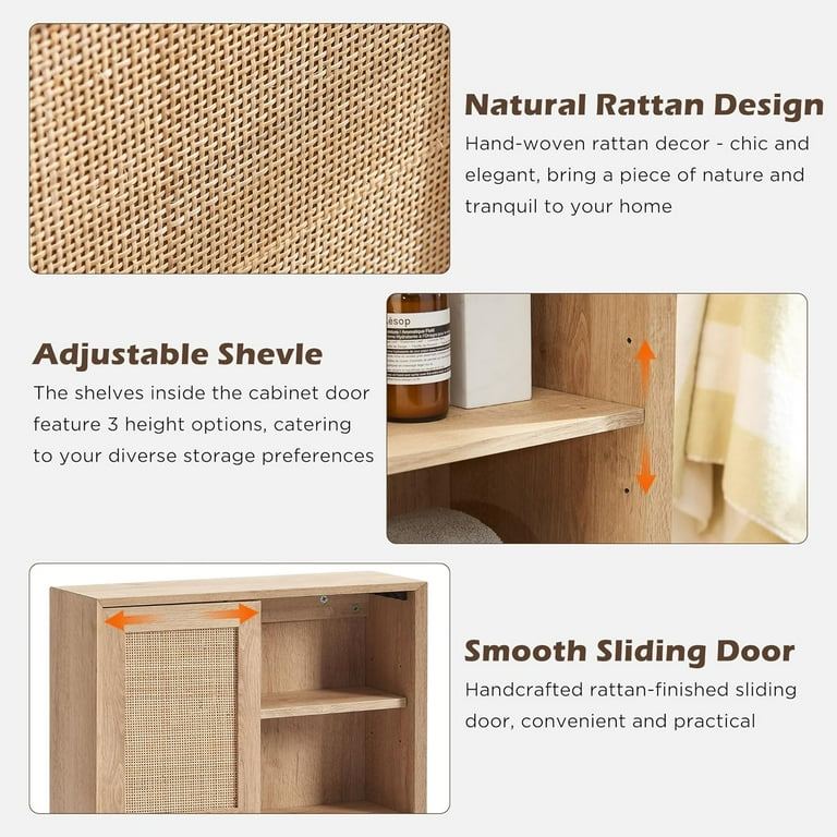 OKD 23 Natural Oak Farmhouse Rattan Wall Mount Bathroom Storage Cabinet with Adjustable Shelves Walmart Very well made.