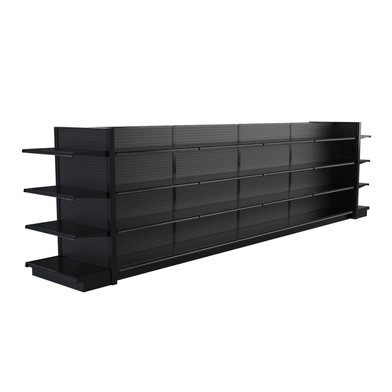 Lozier Black Gondola Shelving Island Display 20ft Wide 60 H 16 D 40 Shelves Very well made.