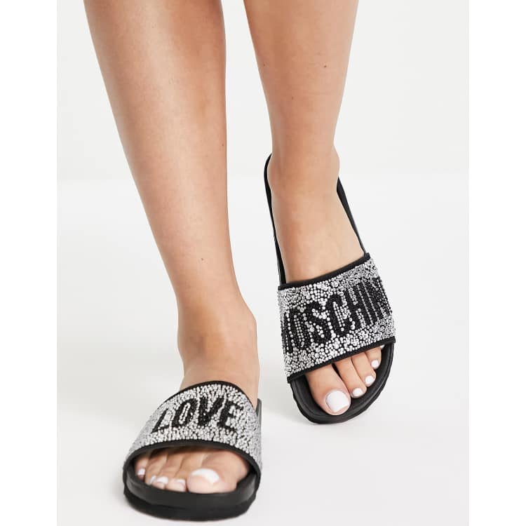 Superdry Women s Pool Slide Sandals Black Silver Rhinestone Very well made.