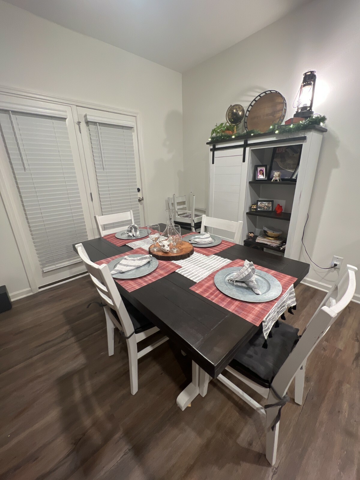 Dinning room Table with chairs 6 and bookcase with barn door Very well made.