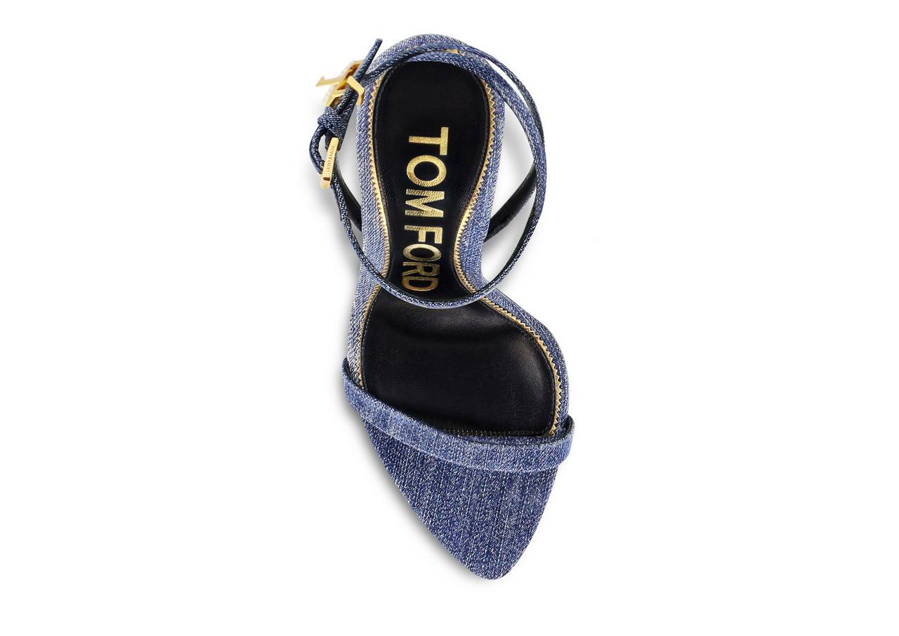 Tom Ford 105 Padlock Pointy Naked Sandals in Blue Denim Cotton ref Very well made.