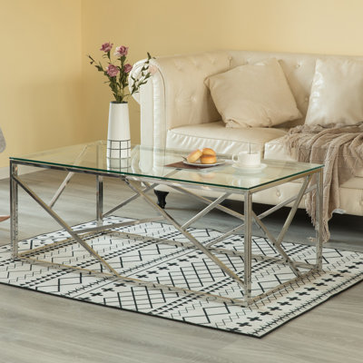 Ave Six Brooklyn Glass Top Table With Metal Frame Rectangular Coffee Table Clear Brushed Nickel Very well made.