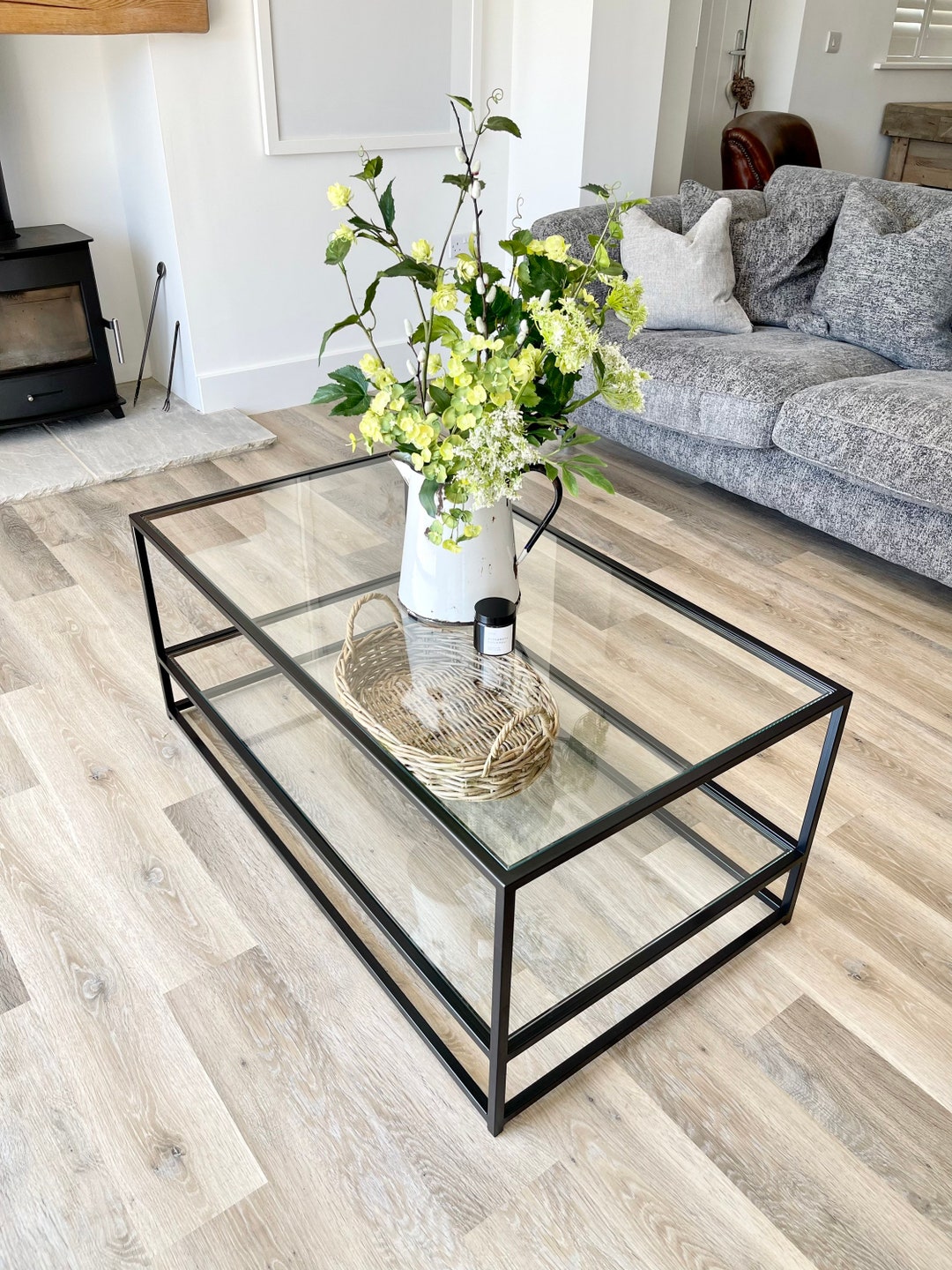 Aria Glass Metal Coffee Table With Shelf Black Etsy Very well made.