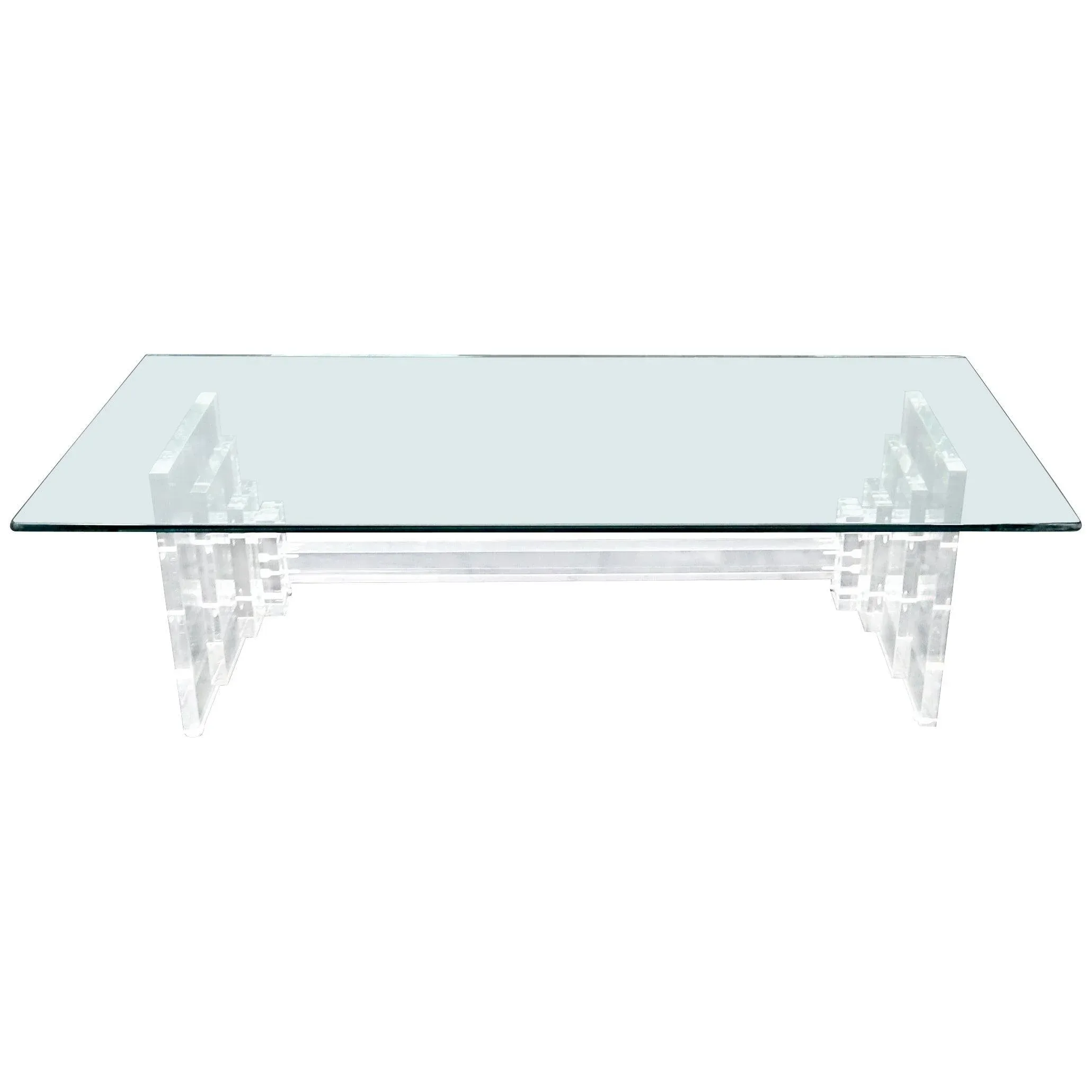 Stacked Lucite Base Rectangular Glass Top Coffee Table Chairish Very well made.