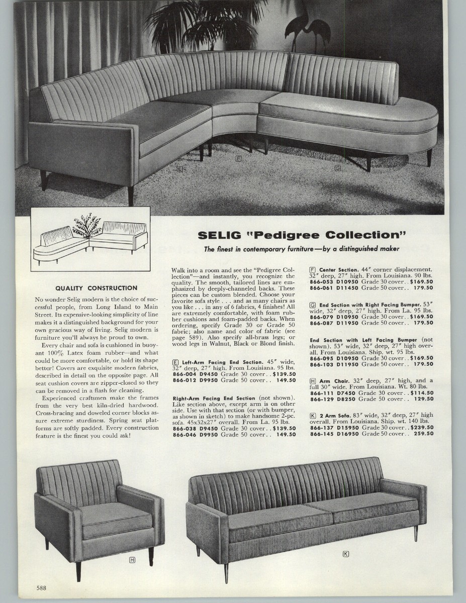 1959 PAPER AD 2 PG Mid Century Modern Furniture Sofa Chair Selig Sectional Couch Very well made.