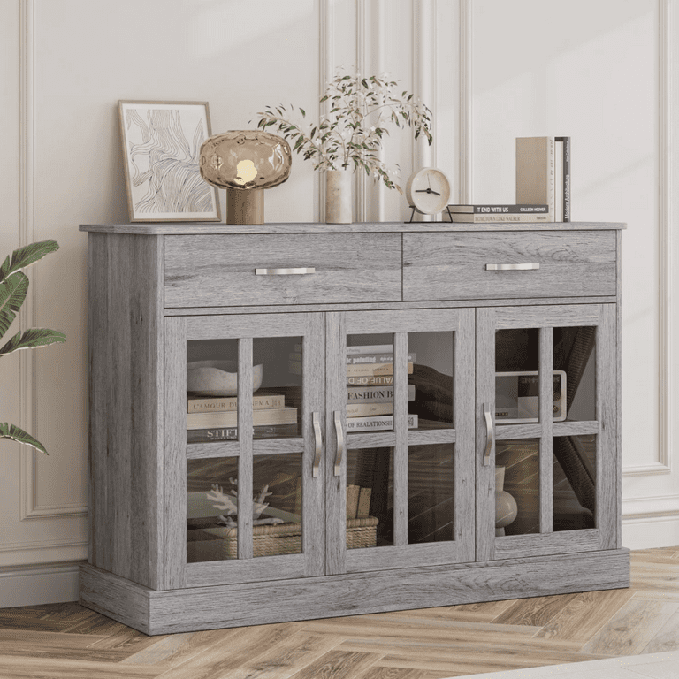 Homfa Buffet Cabinet Cupboard Kitchen Sideboard with 3 Doors and 2 Drawers for Dining Room Gray Very well made.