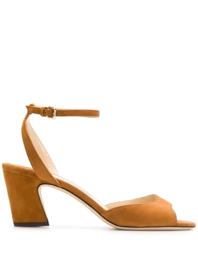 Jimmy Choo Miranda 65 Cuoio Suede Block Heel Sandal In Brown Very well made.
