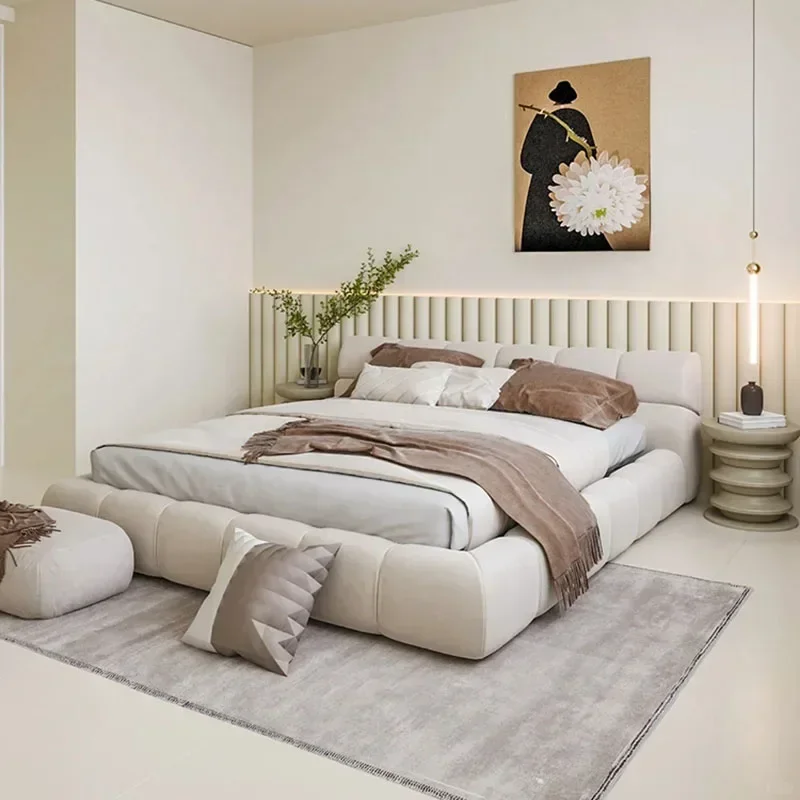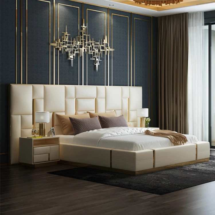 Luxury Modern Bedroom Furniture Big Headboard Queen Size Genuine Leather Sleeping Bed Very well made.