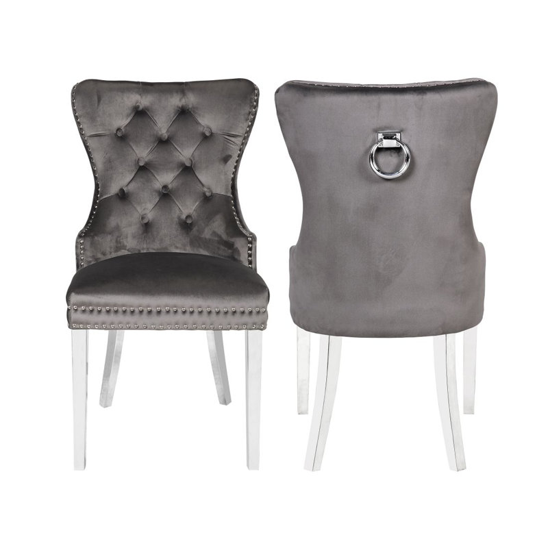 Marilyn Dining Chair Set of 2 Leather Grey Very well made.