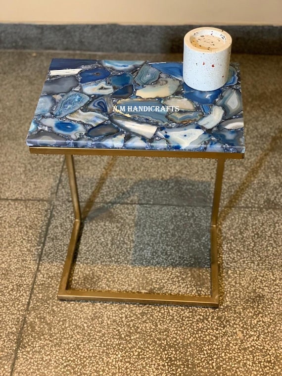 Blue Agate Stone Table Top Books Reading Table Office Working Table Coffee End Table Side Table Agate Stones Marquetry Home Decor Etsy Very well made.