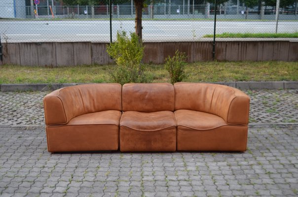 Vintage DS 15 Modular Cognac Saddle Leather Sofa from de Sede 1970s Set of 3 for sale at Pamono Very well made.