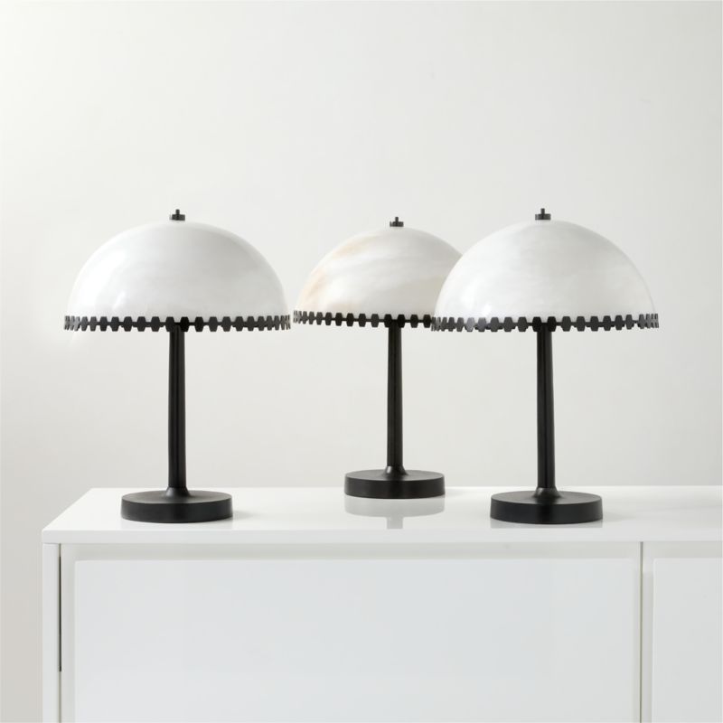 Oceana Black Metal Table Lamp with Alabaster Shade CB2 Very well made.