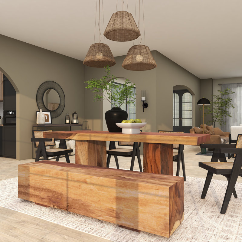 Wood Handmade Live Edge Light Brown Dining Table with Block Style Base Very well made.