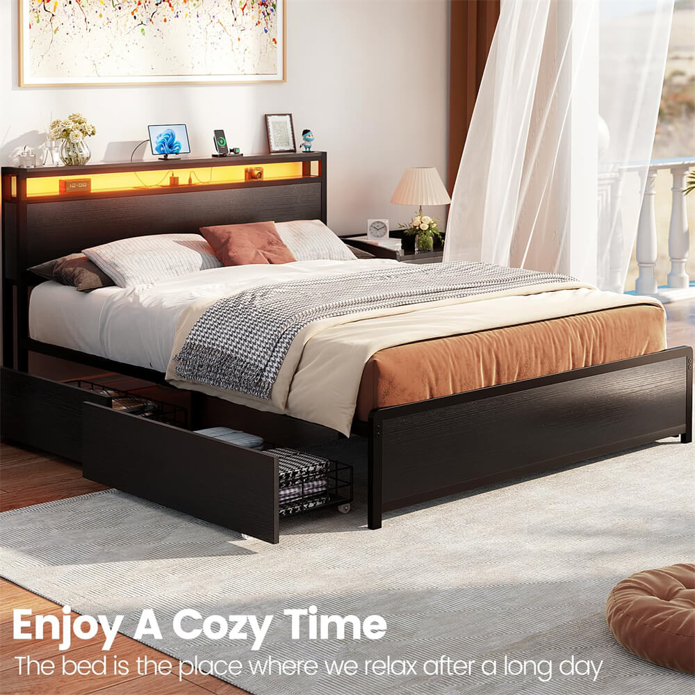 Unikito Queen Size Bed Platform Bed Frame with 4 Drawers Queen Bed Frame with Headboard and Charging Station Black Very well made.