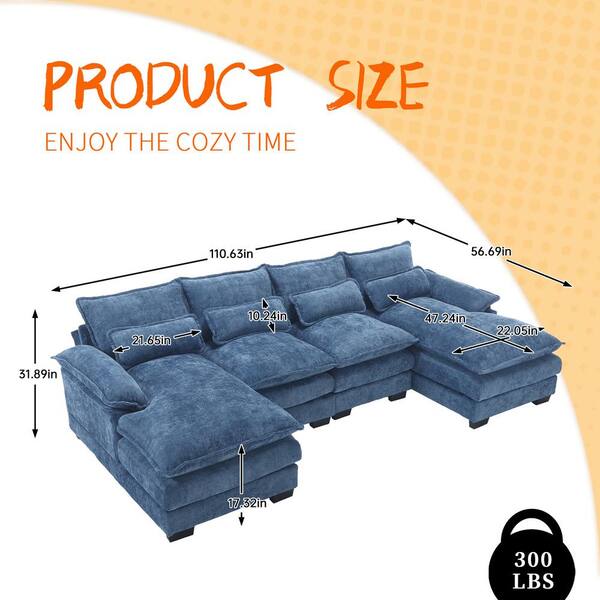 HOMEFUN 110 in. Rolled Arm 4 piece U Shaped Modular Chenille Sectional Sofa Couch in Navy Blue with 2 Cushions and 4 Pillows HFHDSN 788NY The Home Depot Very well made.