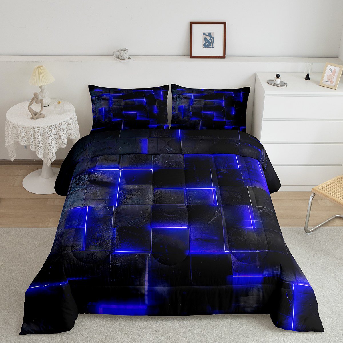 YST Royal Blue and Black Comforter Set King 3D Geometric Checkered Bedding Set for Boys Girls Abstract Neon Square Comforter Set Very well made.