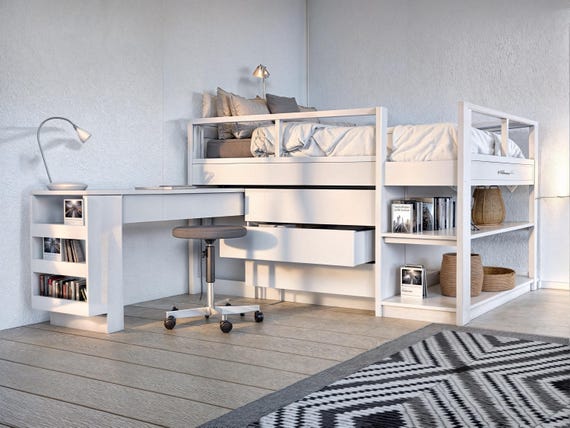 DIY Full size Bunk Bed With Storage Desk Drawers woodworking Plan Etsy Very well made.