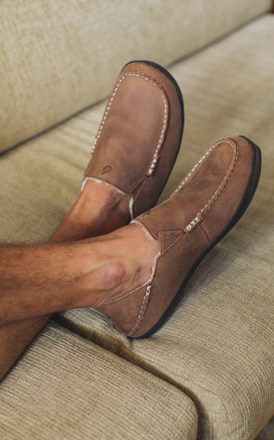 Molo Men s Nubuck Leather Slippers Dark Wood OluKai Very well made.