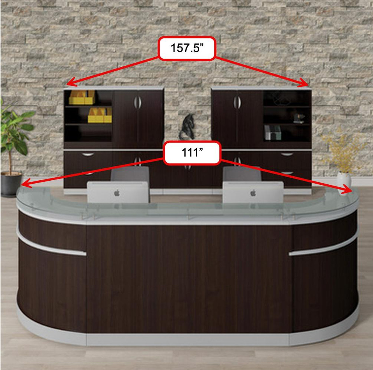 Office Source Cosmo 2 Person Glass Accented Reception Station with Rear Storage Wall Very well made.
