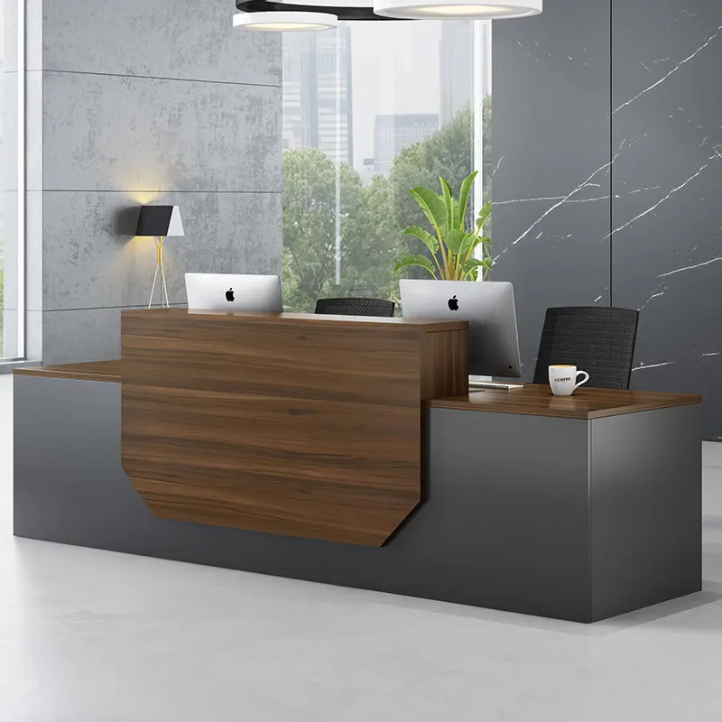 Customized logo Office Furniture 2 Person Modern MFC Wooden Hotel Company Office Front Counter Reception Desk Very well made.