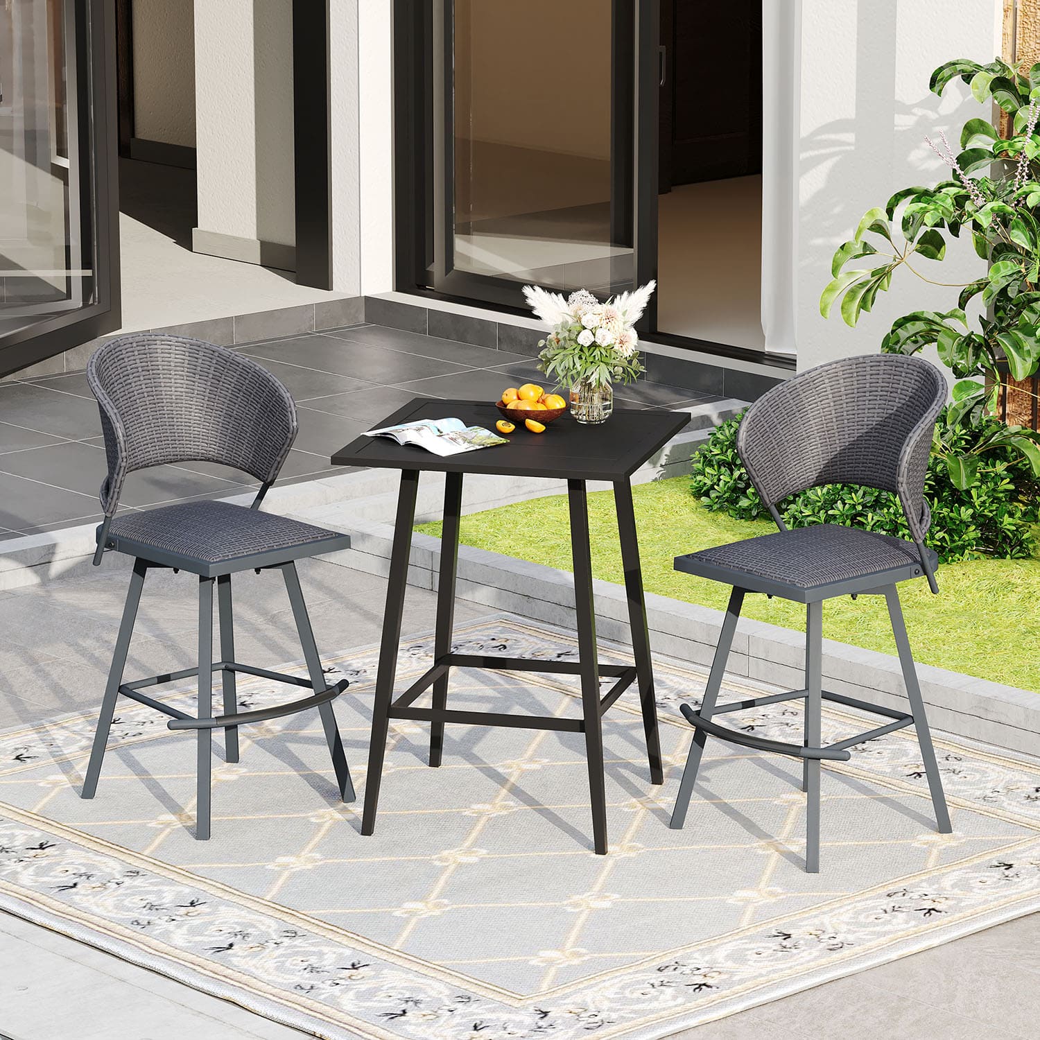 Vicllax 3 PCS Outdoor Swivel Bar Set Patio Wicker Bar Chairs and Squa Vicllax Outdoor Very well made.
