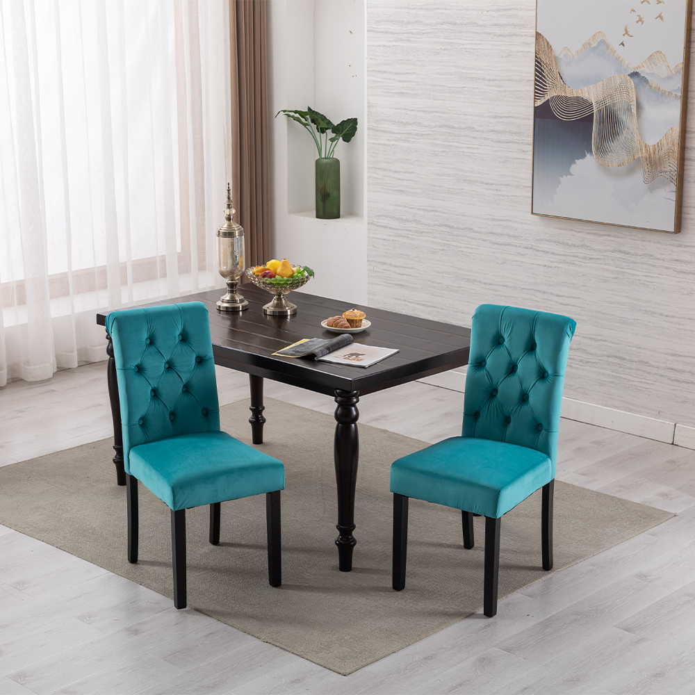 Miyae Set of 2 Pleated Teal Velvet Upholstered Dining Chairs daals Very well made.