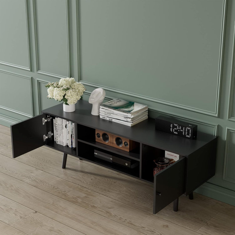 Modern Small TV Stand for 50 inch TV TV Console for Bedroom Living Room and Office George Oliver Color Black Very well made.