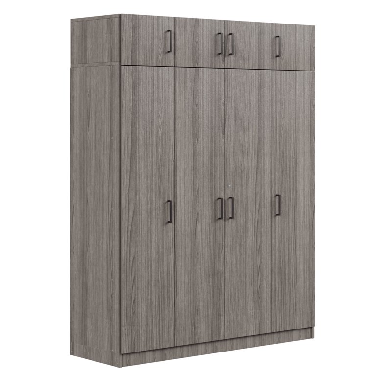 4 Door Armoire Wardrobe with 1 Drawer and Top Cabinet Grey Very well made.