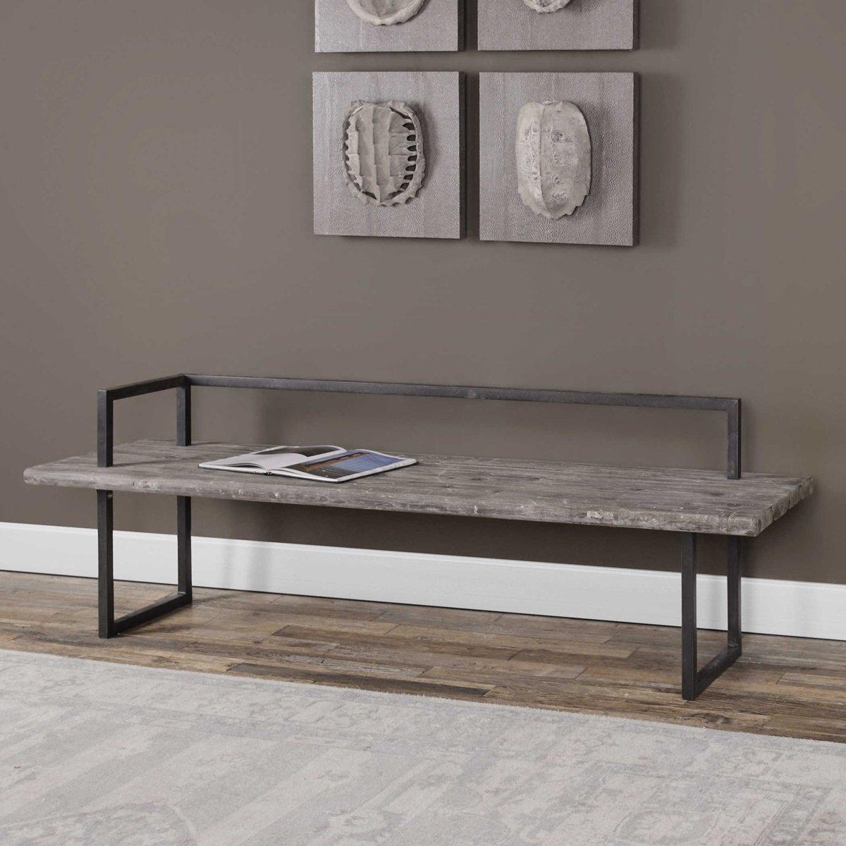 Rustic Reclaimed Wood Bench 26 H x 80 W x 21 D Aged Black White Wash Wood Iron Furniture Rustic Shades of Light Very well made.