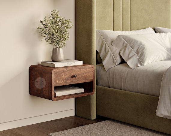 Latitude Run Honey Stained Floating Nightstand Bedside Table. Handcrafted With Real Wood. Mounts On Wall. Easy Installation. Rustic Decor Very well made.