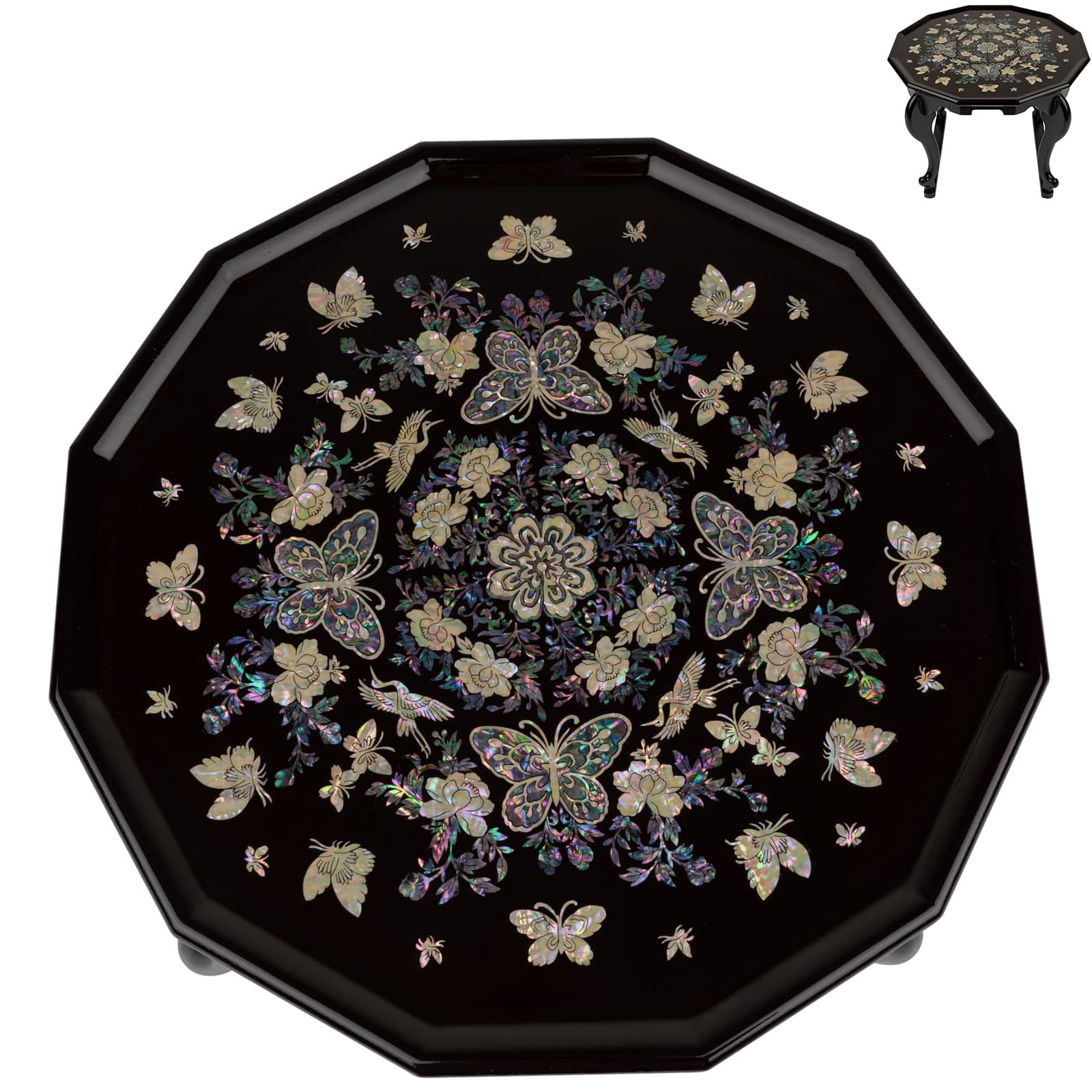 Mother of Pearl Wooden Table with Butterfly and Peony ArtinKo Very well made.