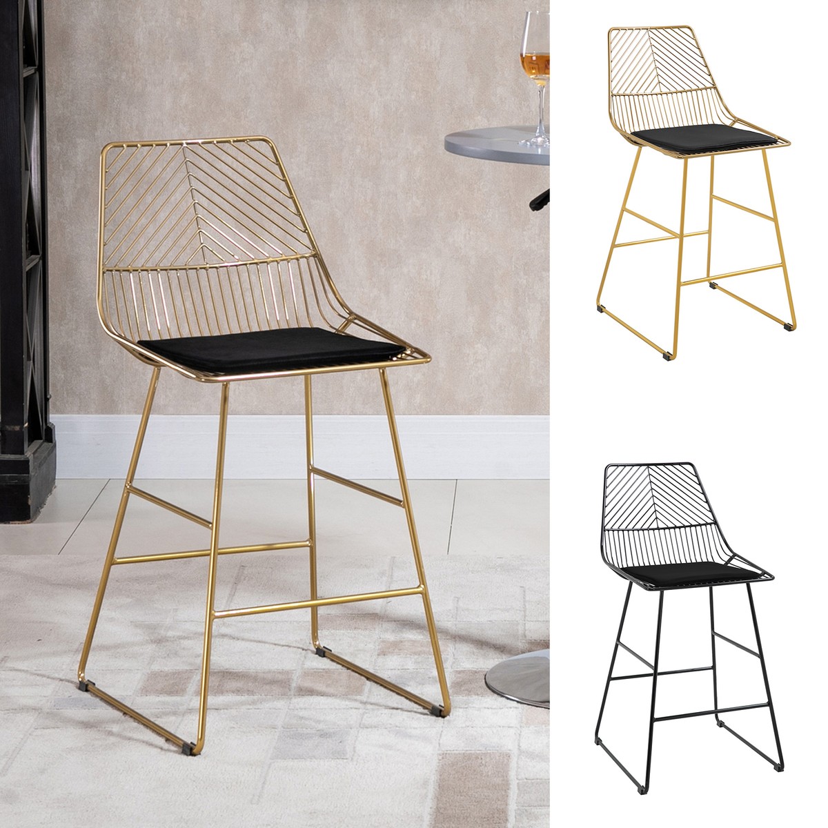Modern Counter Height Bar Stools Set of 2 pcs Wire Metal Barstools for Kitchen Very well made.