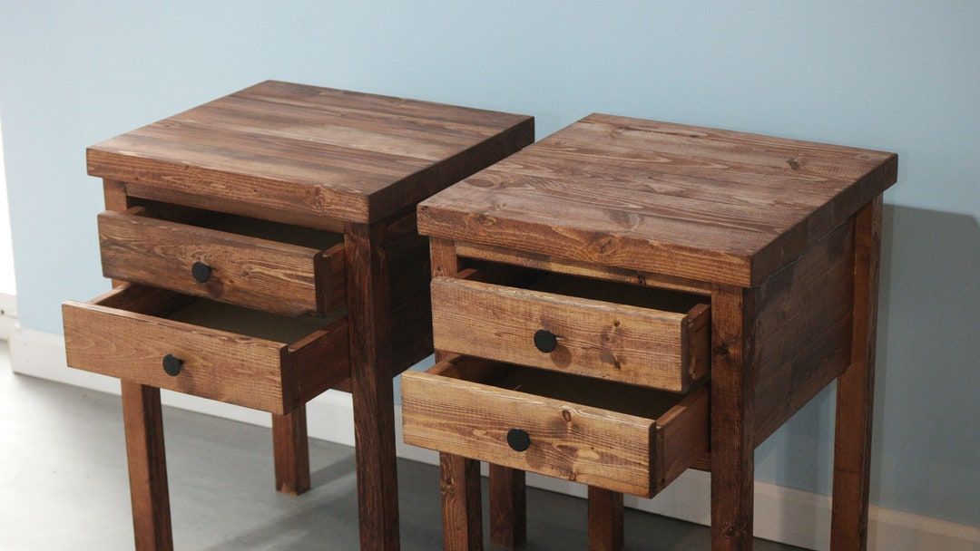 Rustic Nightstands Bed Side Table for Bedroom with Solid Wood Legs Set of 2 Jaxpety Very well made.