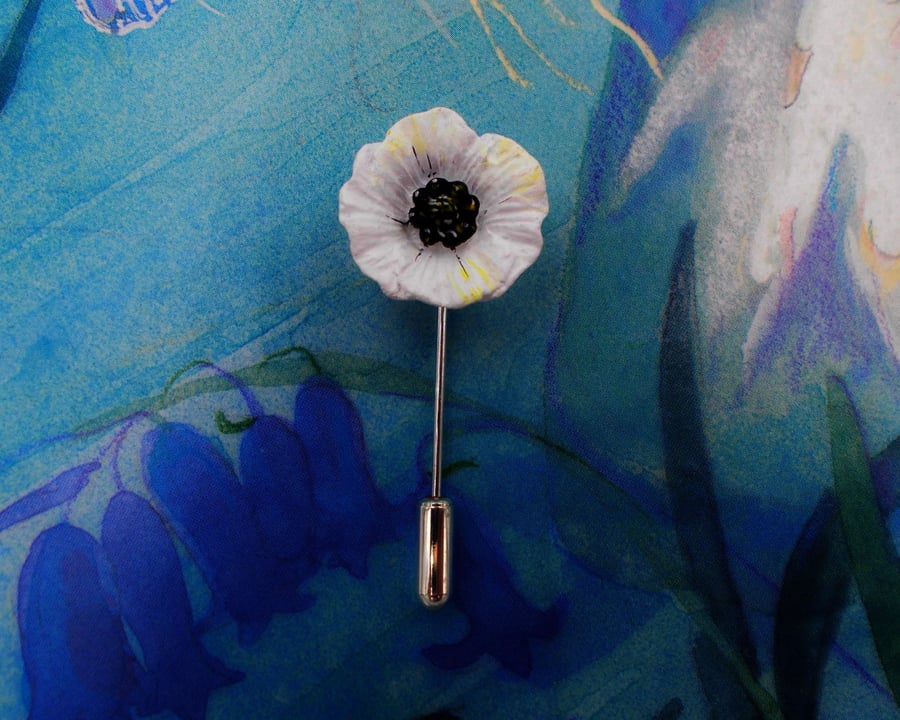 SMALL WHITE PEACE POPPY PIN Wedding Remembrance Lapel Flower Brooch HAND PAINTED Very well made.