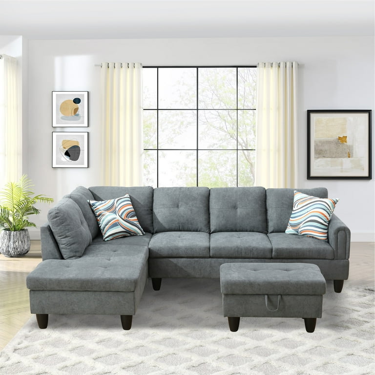 Aukfa AK FS03 029 3 Piece Sectional Sofa Set with Storage Ottoman Left Facing Chaise Flannel Upholstery Dark Gray Size 97 L x 66.5 W x 33.5 H Very well made.