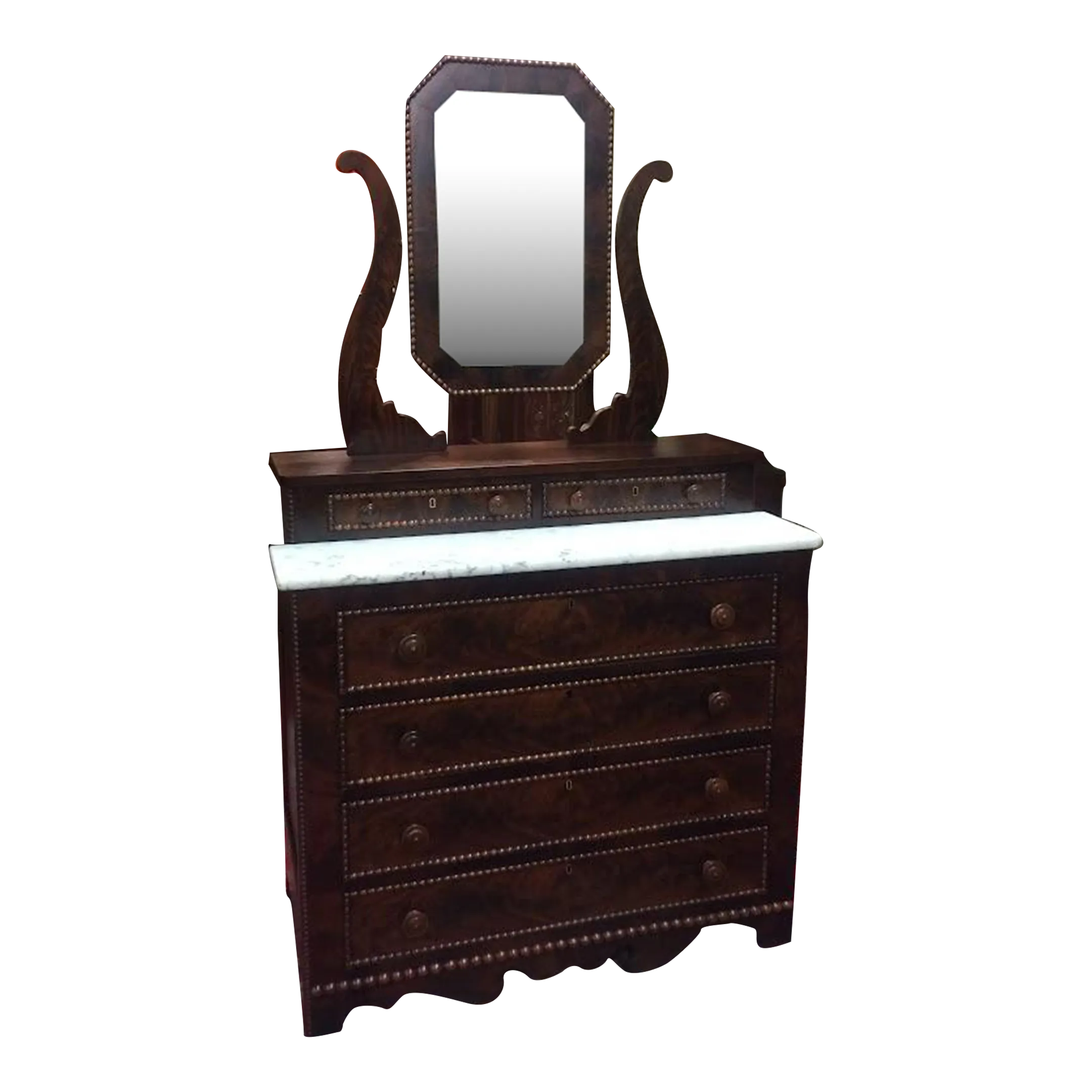 Antique Flame Mahogany American Empire Eastlake Marble Top Mirror Dresser For Sale at 1stDibs Very well made.
