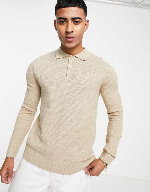 Jack Jones Premium Polo en maille textur e manches longues Beige Very well made.